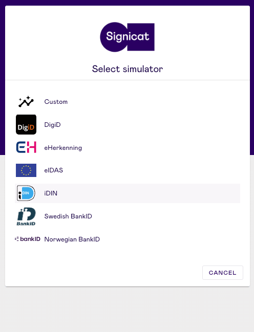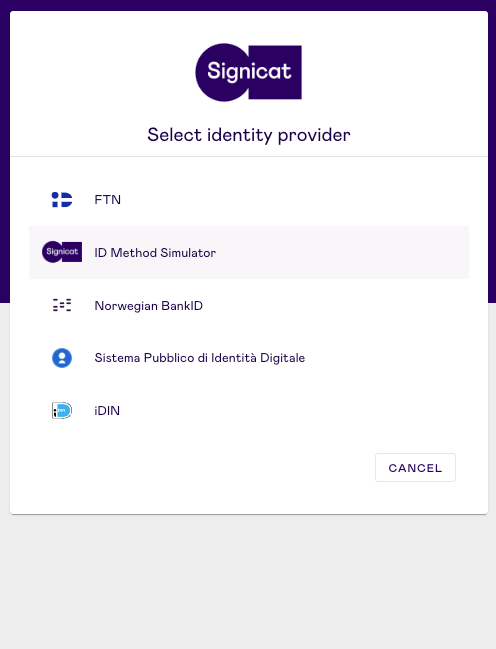 - Optional. If you activated other eIDs, choose your simulator from the list of allowed identity providers.