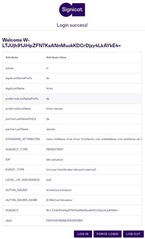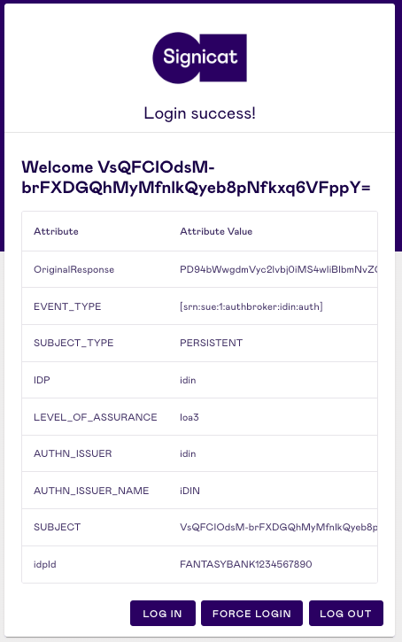 You logged in successfully! At this stage, a potential end-user would have completed the authentication flow using iDIN. Note that in production end-users are routed to the redirect URL you configure in your preferred authentication protocol.
